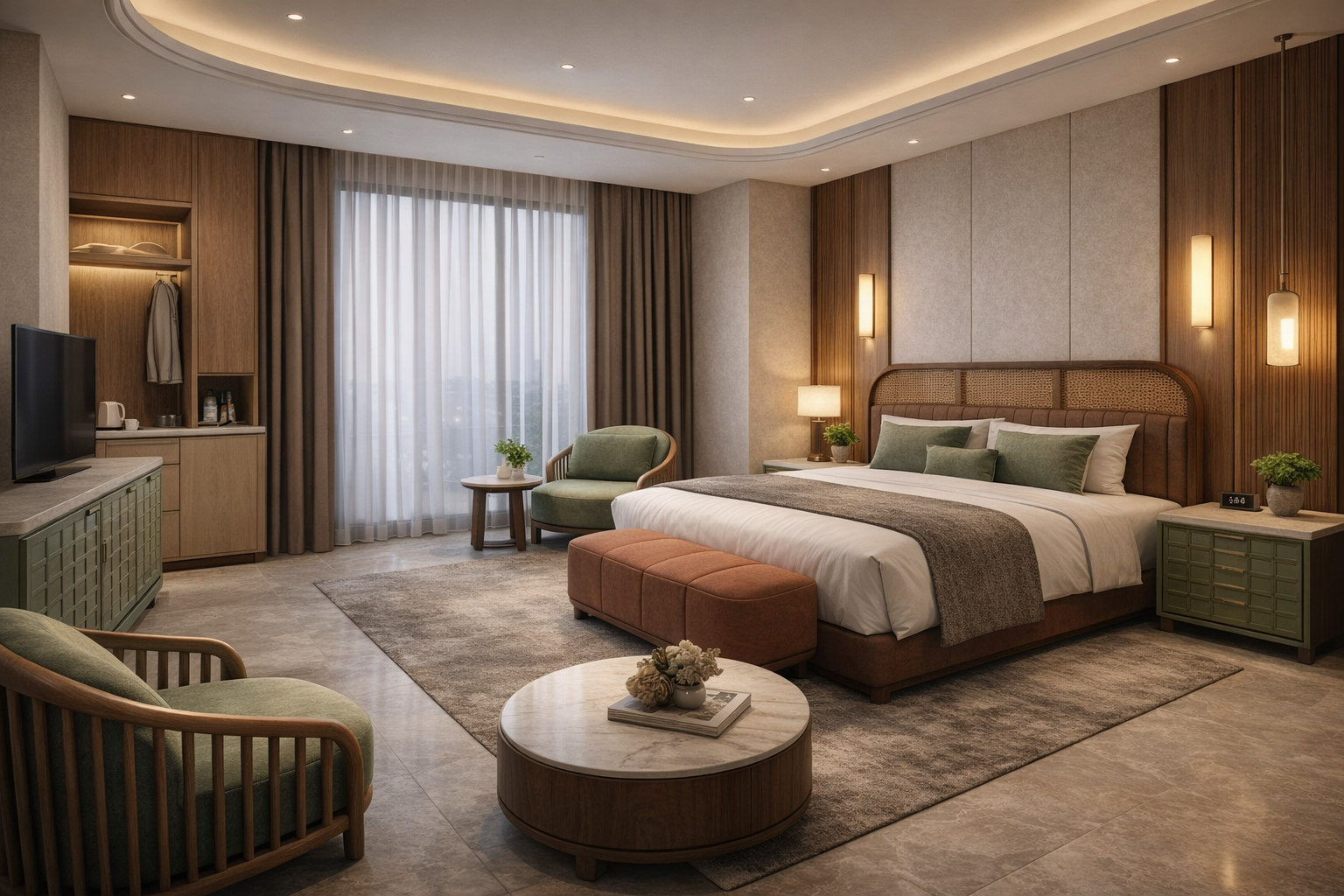 Furniture including:hotel bedroom furniture ,sofa and chair ,fixed furniture (wall panel and door )