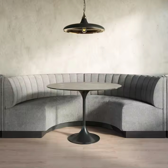 This premium commercial booth seating set is designed to elevate the ambiance of restaurants, bars, cafes, or lounges, blending durability with modern aesthetics. Crafted with high-density foam cushions and stain-resistant upholstery (available in leather, fabric, or vinyl), it ensures long-lasting comfort for patrons during extended stays. The modular design allows flexible configurations—from intimate 2-seater booths to spacious corner units—while sturdy metal or solid wood frames guarantee stability for high-traffic commercial use. Ideal for creating cozy dining nooks or stylish bar seating, this set combines functionality with a sleek, contemporary look to enhance any hospitality space.